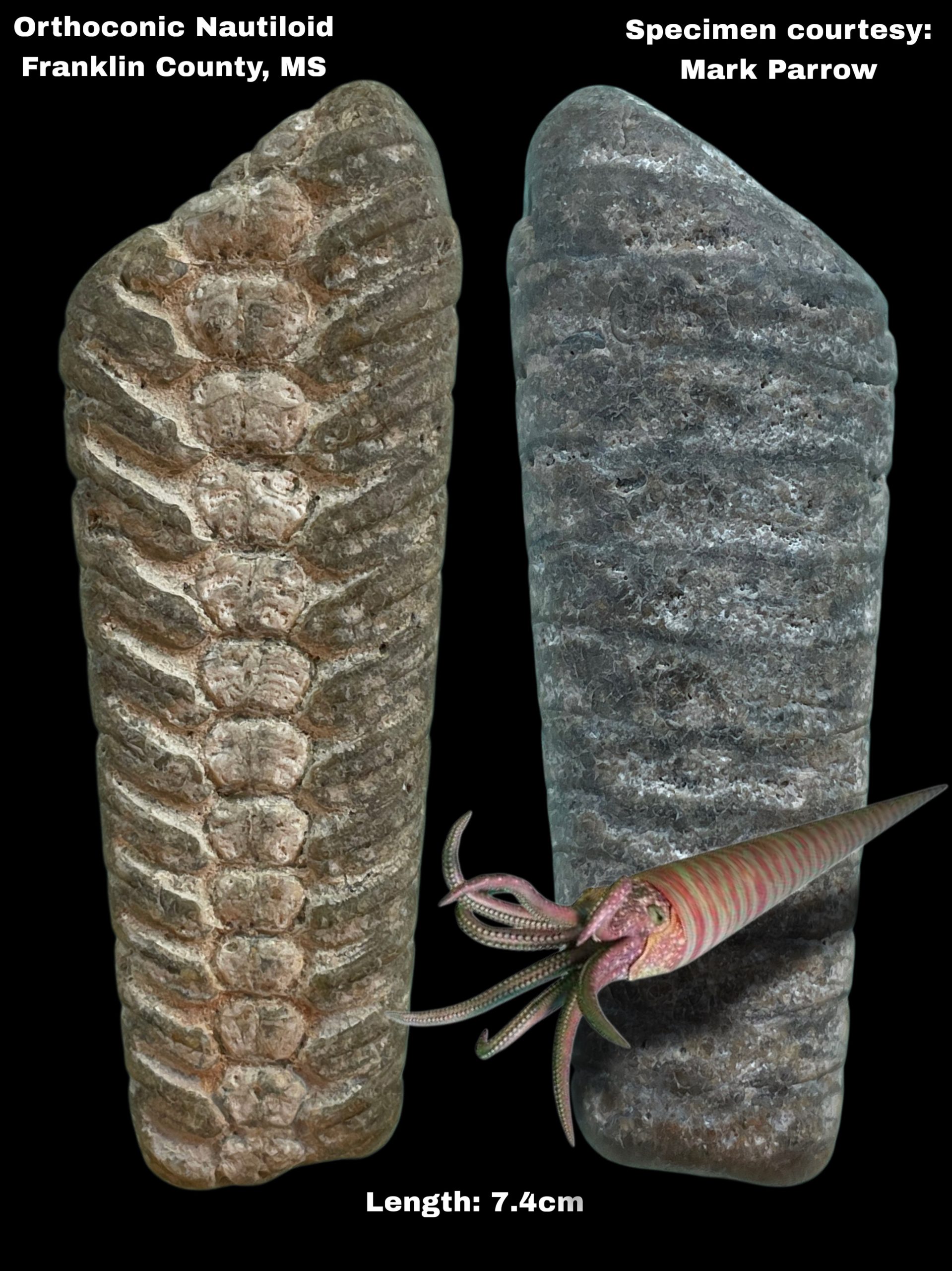 Special thanks to Jim House of the Mississippi Archaeological Association, Madison Chapter for allowing MDEQ, Surface Geology staff to identify and photograph this remarkable fossil artifact specimen.