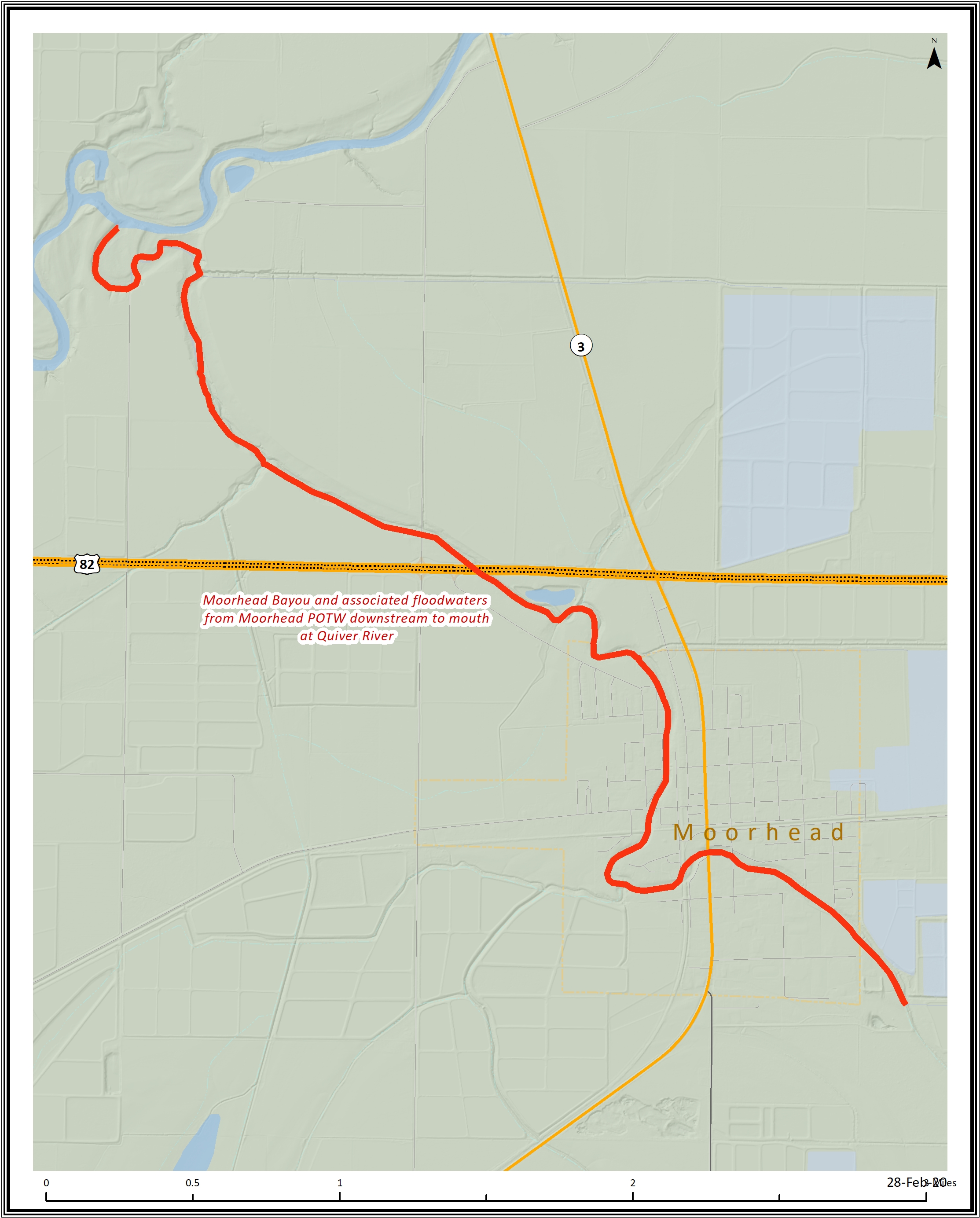 (JACKSON, Miss.) – The Mississippi Department of Environmental Quality (MDEQ) issued a water contact advisory Friday for Moorhead Bayou and associated floodwaters near the City of Moorhead. The advisory is issued for the Moorhead Bayou and associated floodwaters from the eastern boundary of the city to its confluence with the Quiver River (see attached map). The advisory is being issued due to mechanical failure of pumps at the city’s main lift station that has resulted in the discharge of untreated wastewater into the bayou. The city is working to repair the pumps.